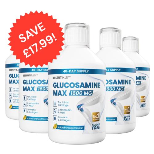 Glucosamine Max 1,600mg is a high-potency liquid supplement designed to maximise joint and cartilage health with a superior blend of Glucosamine Sulfate, MSM, Chondroitin and Collagen. Unlike capsules or tablets, this liquid formula contains significantly more active ingredients, ensuring better absorption and faster results for relieving joint pain, stiffness, and swelling. CLINICALLY PROVEN to relieve joint discomfort in 6 weeks. Anti-inflammatory properties √ Improve mobility √ Boost bone and muscle strength √